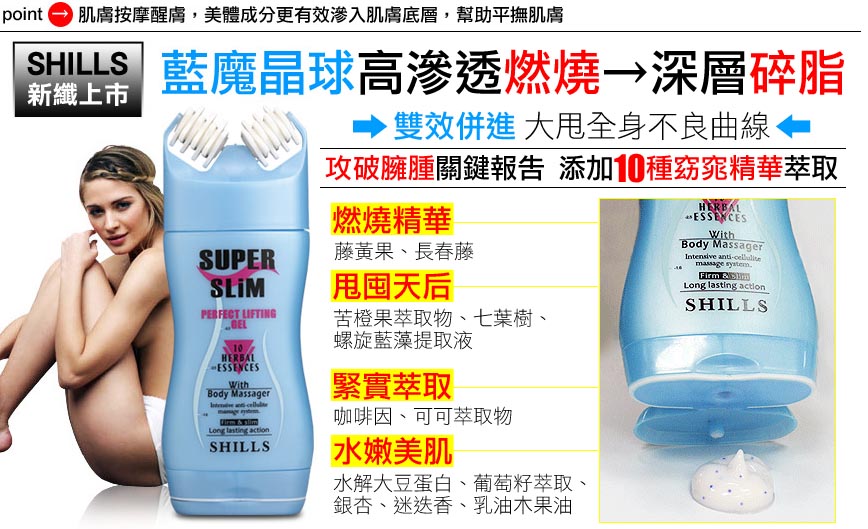 Description : Shills SUPER SLIM 150ml Intensive anti-cellulite massage system. 3Xs Anti cellulite essences + 2Xs firming ingredients + 360 degree roller that breaks down fatty deposits