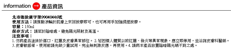Suitable for buttocks, abdomen, back, arms and legs Capacity: 150ml Ingredients: How to use Using the rollers, massage the area where having cellulite for 5 to 10 strokes. After massaging with the rollers, open the lid on the bottom of the pack and apply the post massage firming concentrate. Safety / Caution - Do not apply to damaged, broke, or inflamed areas of the skin.