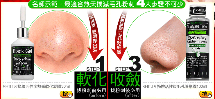 Faced with dark tiny pores and rough tiny spots? Apply the SHILLS Black Gel Deep Sebum Softener to the problem areas. Massage gently to produce heat and this will help to soften the sebum and blackheads stuck in the pores. Leave it for 3 minutes followed by application of SHILLS Peel off mask to pull up more blackheads and dirt deep from pores. This total skin friendly solution melts dirt quickly, giving you clean and breathable pores.