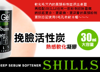 SHILLS Black Gel Deep Sebum Softener, specializes on improving common skin problems such as sebum, acnes and blackheads. Combining massage plus Gel Liposomes to soften even the most stubborn blackheads.