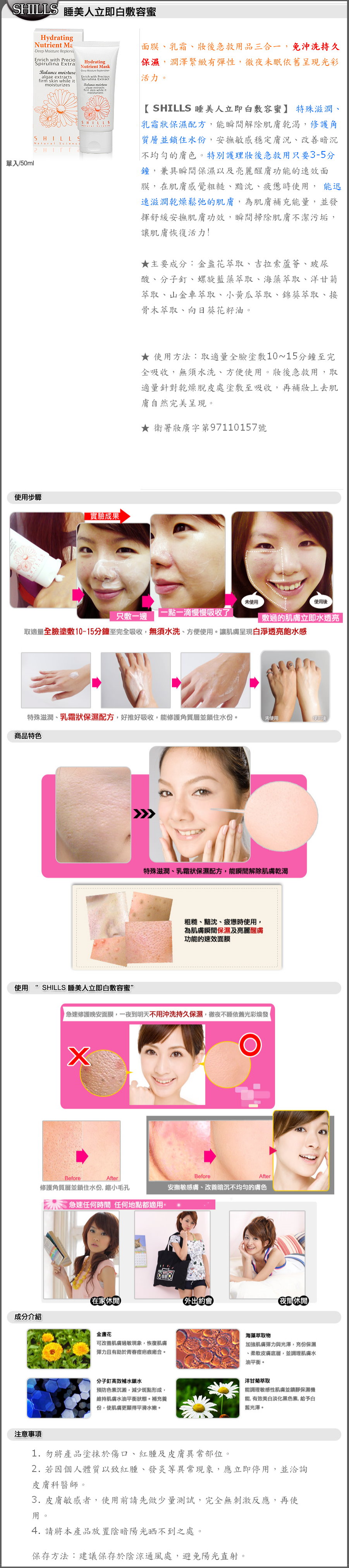 Description : Shills Hydrating Nutrient Mask 50ml產品簡介: