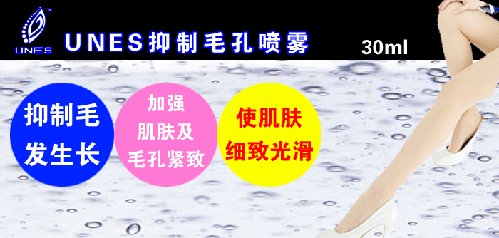 粗毛BYE BYE,毛毛不再长 脱毛后清洗脱毛部位 立即喷本喷雾 可使毛毛延长到一个月后才长出来哟 UNES脱毛原液最佳伴侣----UNES毛孔抑喷雾!
