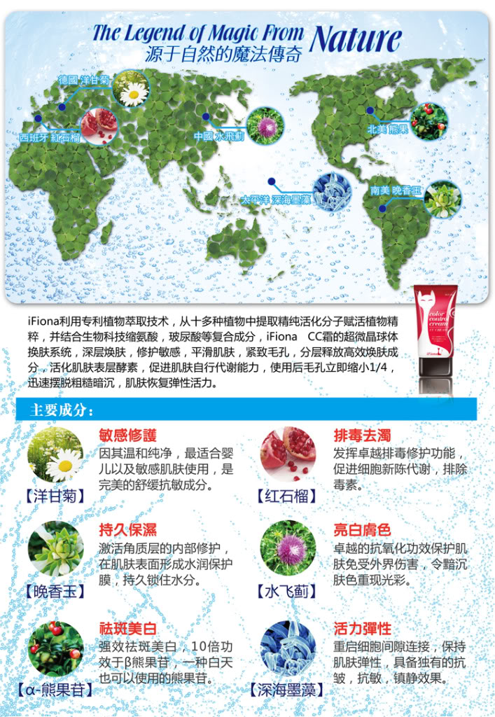 使用方法:肌肤护理后,取适量于面部和颈部,轻拍直到肌肤吸收为止,裸装或在进行彩妆均可。