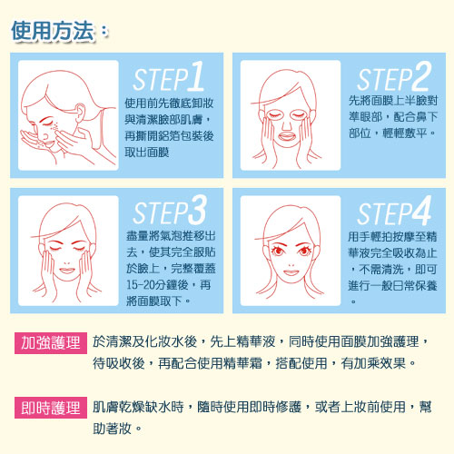 Description : ☆╮全方位→美白兼具改善肌膚六大問題☆╮ 時加強肌膚對外界環境的防禦力,促進肌膚彈力緊緻,改善肌膚細紋,透過服貼地加壓,讓你在敷面膜時,得到絕佳的滲透,只要十五分鐘,肌膚會感覺立即明亮、緊緻、飽水,是炎夏及缺水敏感肌膚的絕佳急救型保養面膜。