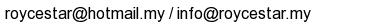 Company Particular| Company : | ROYCESTAR INNOVTECH SDN BHD | | Fax : | 07-5588252 | | Address : | 28-A, Jalan Ronggeng 12, Taman Skudai Baru, 81300 Skudai, Johor, Malaysia. | | Email : |  | | Website : | http://roycestar.my |