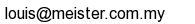 Company ParticularCompany : | Meister Plastic Industries (M) Sdn Bhd | Fax : | 03-7845 8327 | Address : | No. 140-B-2, Lorong 10D, Kampung Baru Subang, 40150 Shah Alam, Selangor Darul Ehsan | Email : |  | Website : | http://meister.com.my |