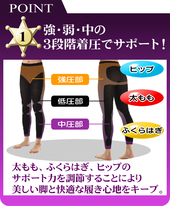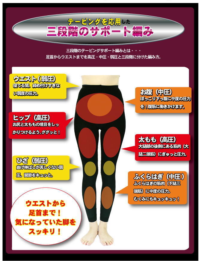 「Platinum配合夜晚集中三段式著壓美腿褲(黑M~L)」,從小腹開始到膝蓋, 三段式(強中弱)著壓式編織法,夜間集中修飾臀部及大腿,翌日穿著窄裙、牛仔褲更加有形!